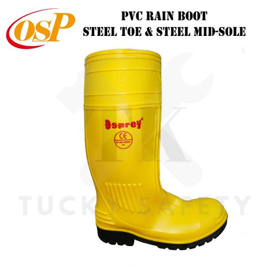 [ READY STOCK ] ( SIZE 5-11 ) OSP SAFETY RUBBER BOOTS WITH STEEL TOE CAP AND MID SOLE / RICO YELLOW BOOT
