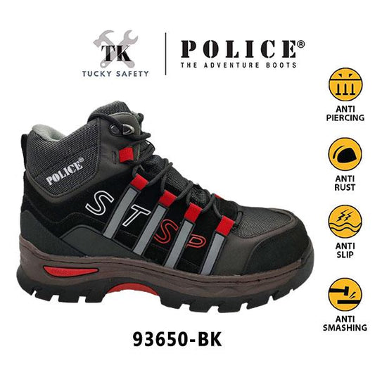 93650 SERIES [ POLICE ] MID CUT SPORT SERIES STEEL TOE STEEL PLATE SIDE STITCHING SPORT LOOK SAFETY SHOE WITH REFLECTIVE