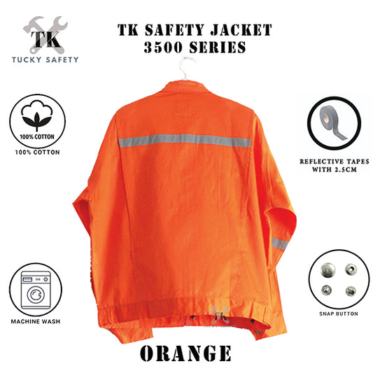 TK3500 - ORANGE TK 100% COTTON MEN'S SAFETY WORKING JACKET / MEN'S COOLER WORKING JACKET / BAJU KERJA LELAKI 3500