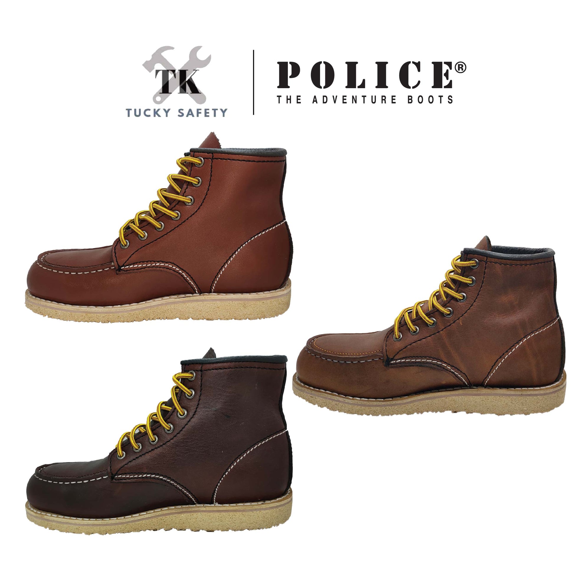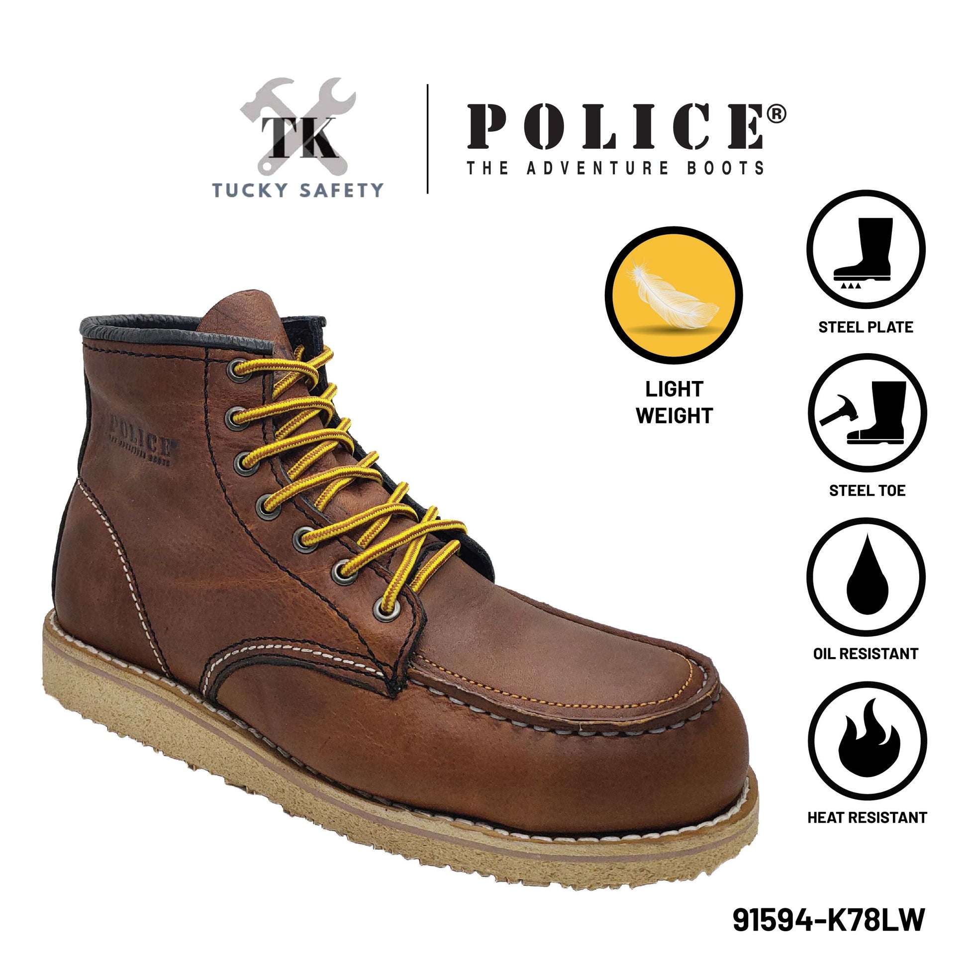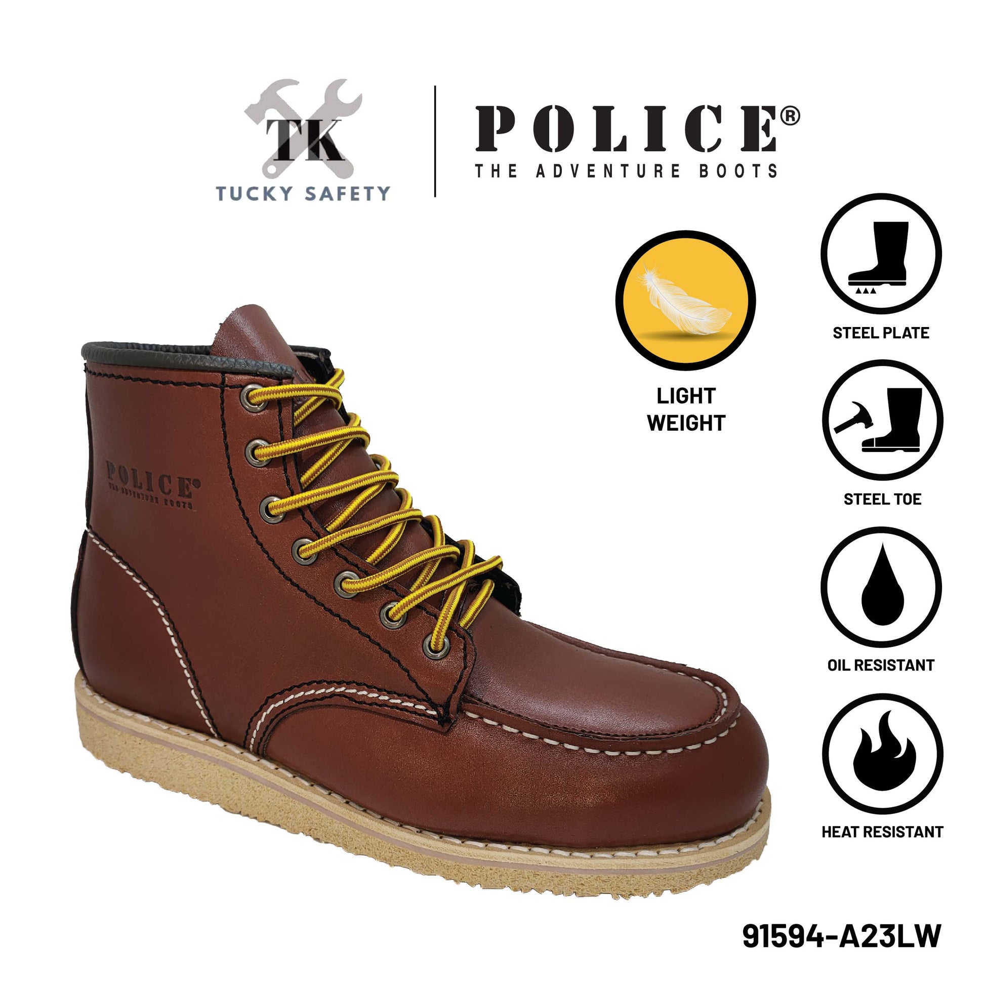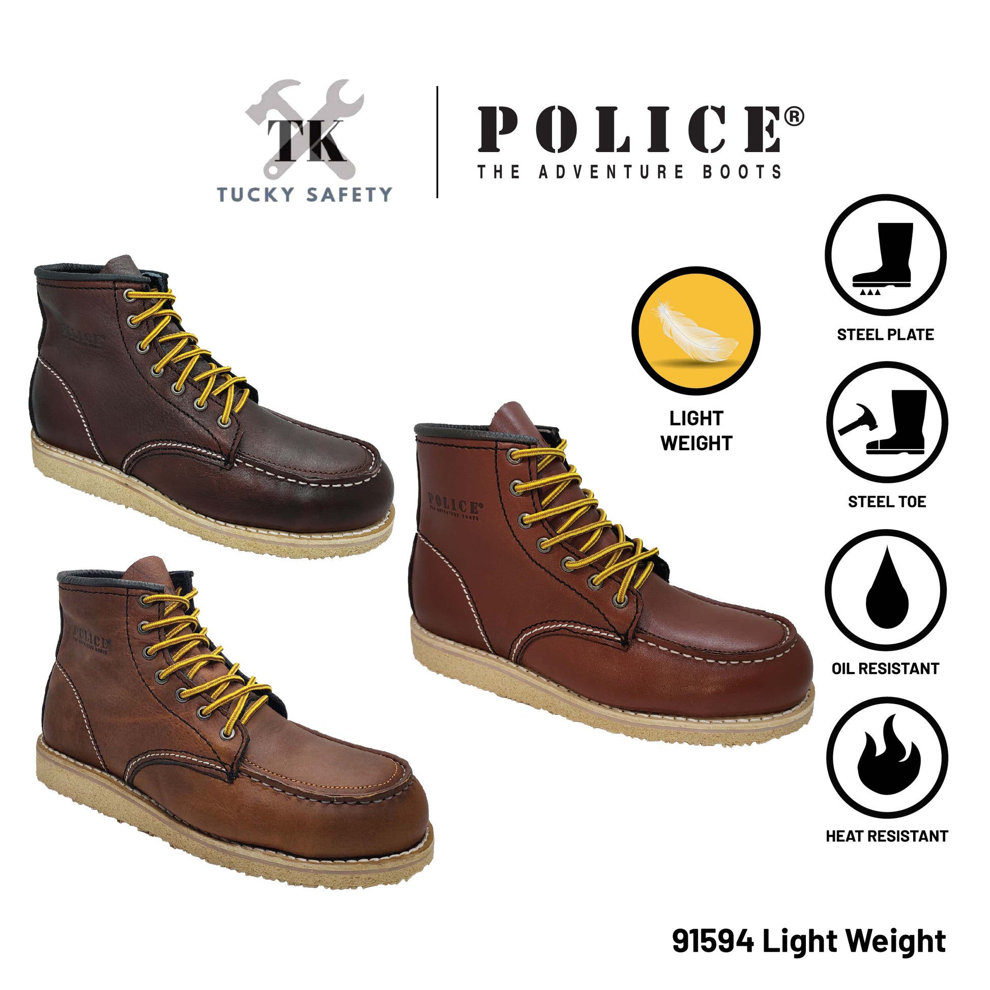 91594 Light Weight - [ POLICE ] LIGHT WEIGHT PREMIUM LEATHER MEN'S SAFETY BOOT / KASUT KERJA SAFETY BOOT LELAKI